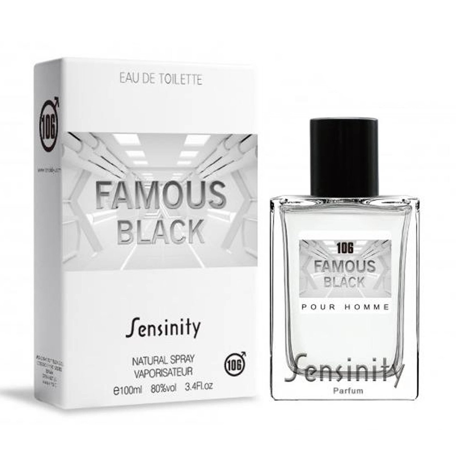 La colonia Famous Black Homme Sensinity 100 ml es una fragancia masculina que combina notas amaderadas y orientales, perfecta para dejar una huella sofisticada en cualquier ocasión. Su aroma inspirado en la fragancia de renombre, ofrece una experiencia olfativa única.