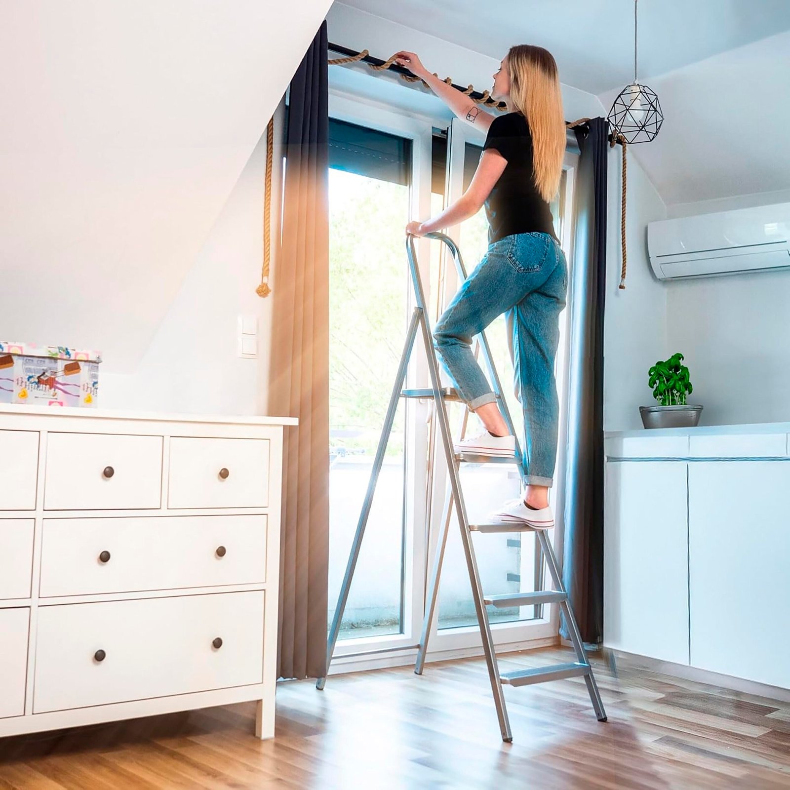 Eleva tu trabajo con total seguridad gracias a nuestra escalera de aluminio plegable homologada, diseñada para combinar robustez, comodidad y seguridad. Fabricada con perfiles reforzados, peldaños antideslizantes y materiales de alta calidad, esta escalera es la opción ideal para tareas domésticas y profesionales. Cumple con la normativa europea EN131, ofreciendo confianza y durabilidad en cada uso.