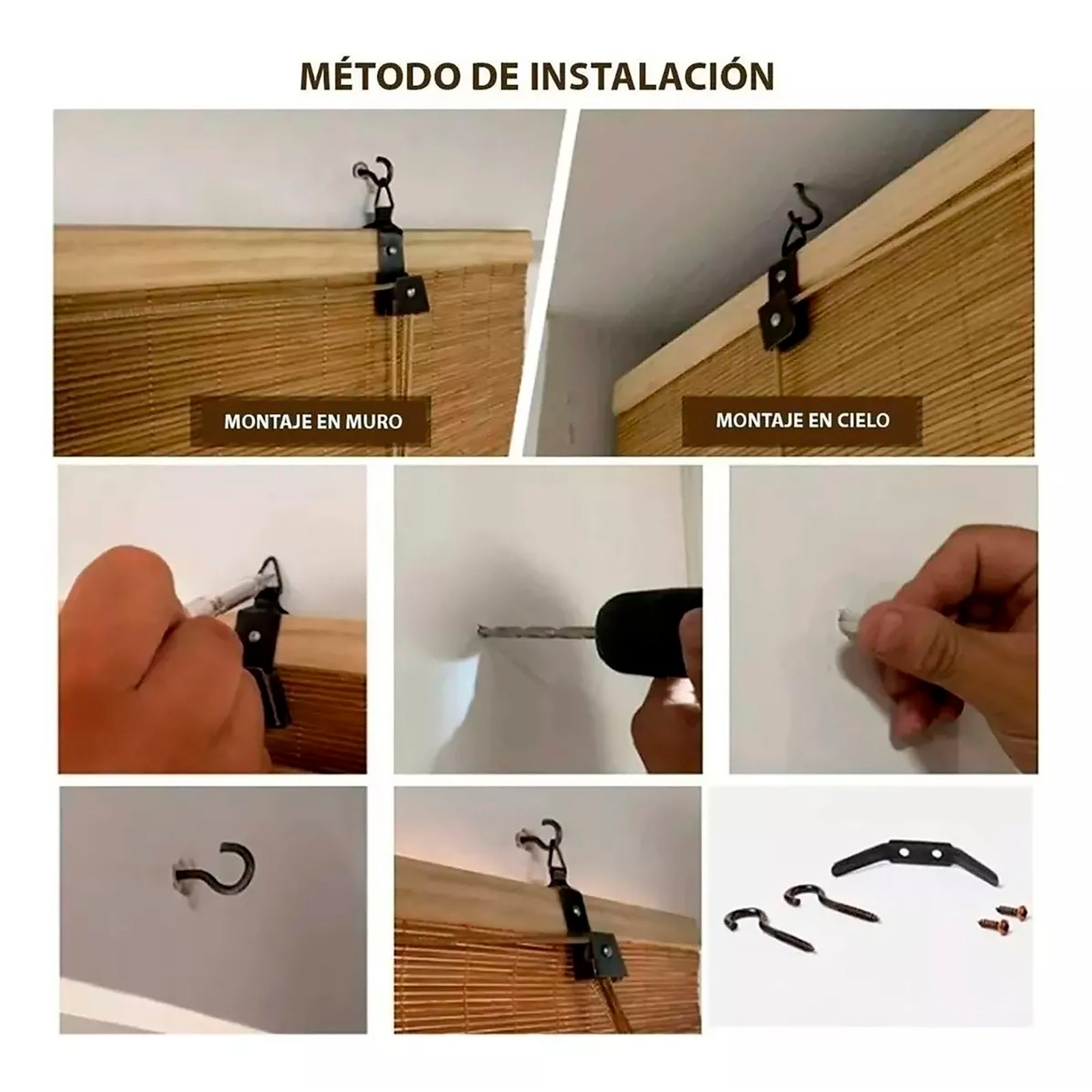 • Sistema de enganche incluido: Soportes y herrajes básicos para instalación en techo o pared (kit).