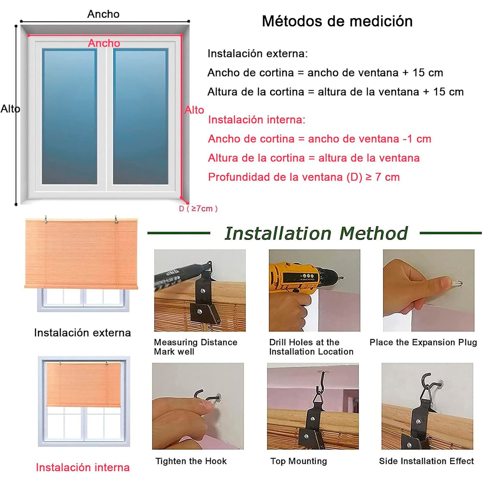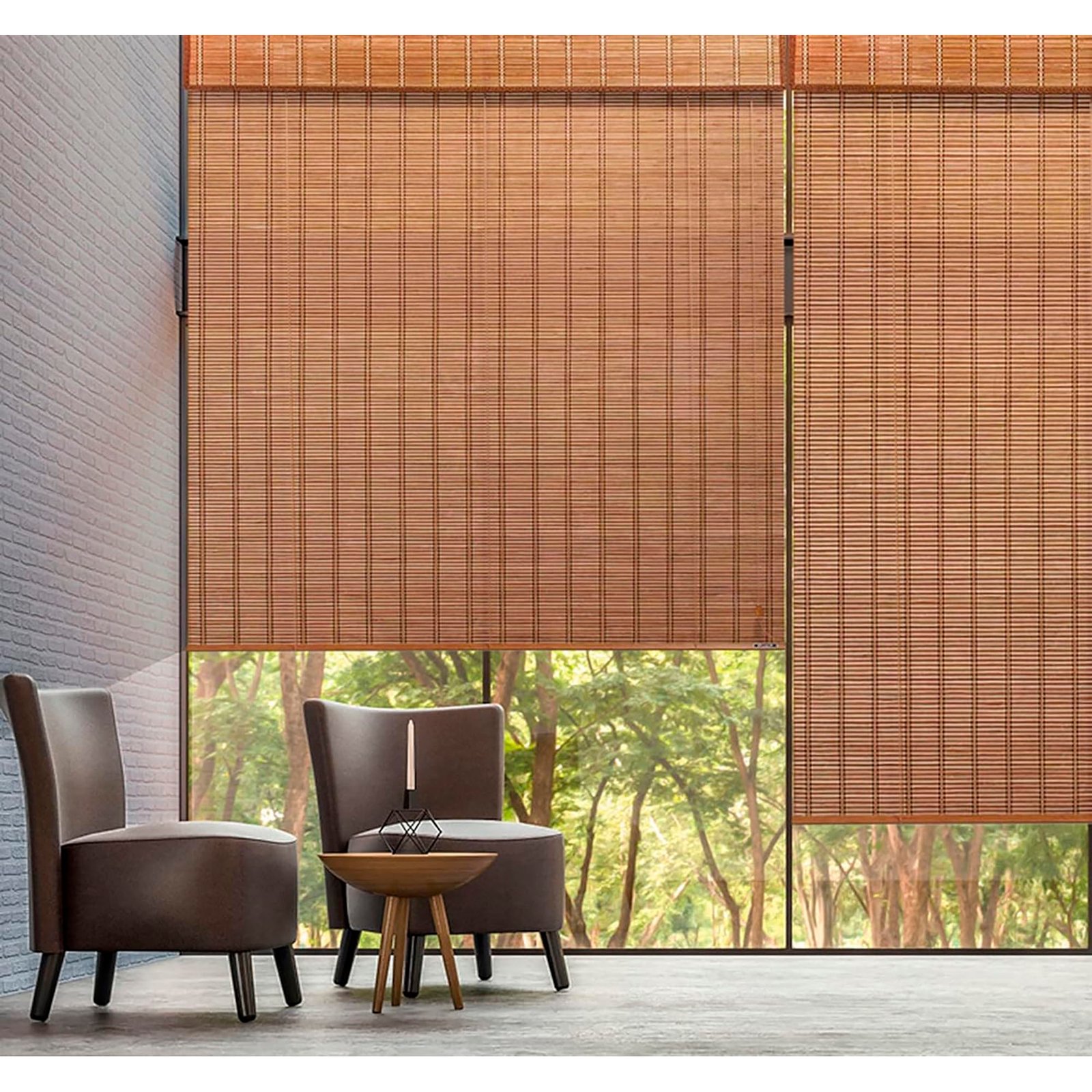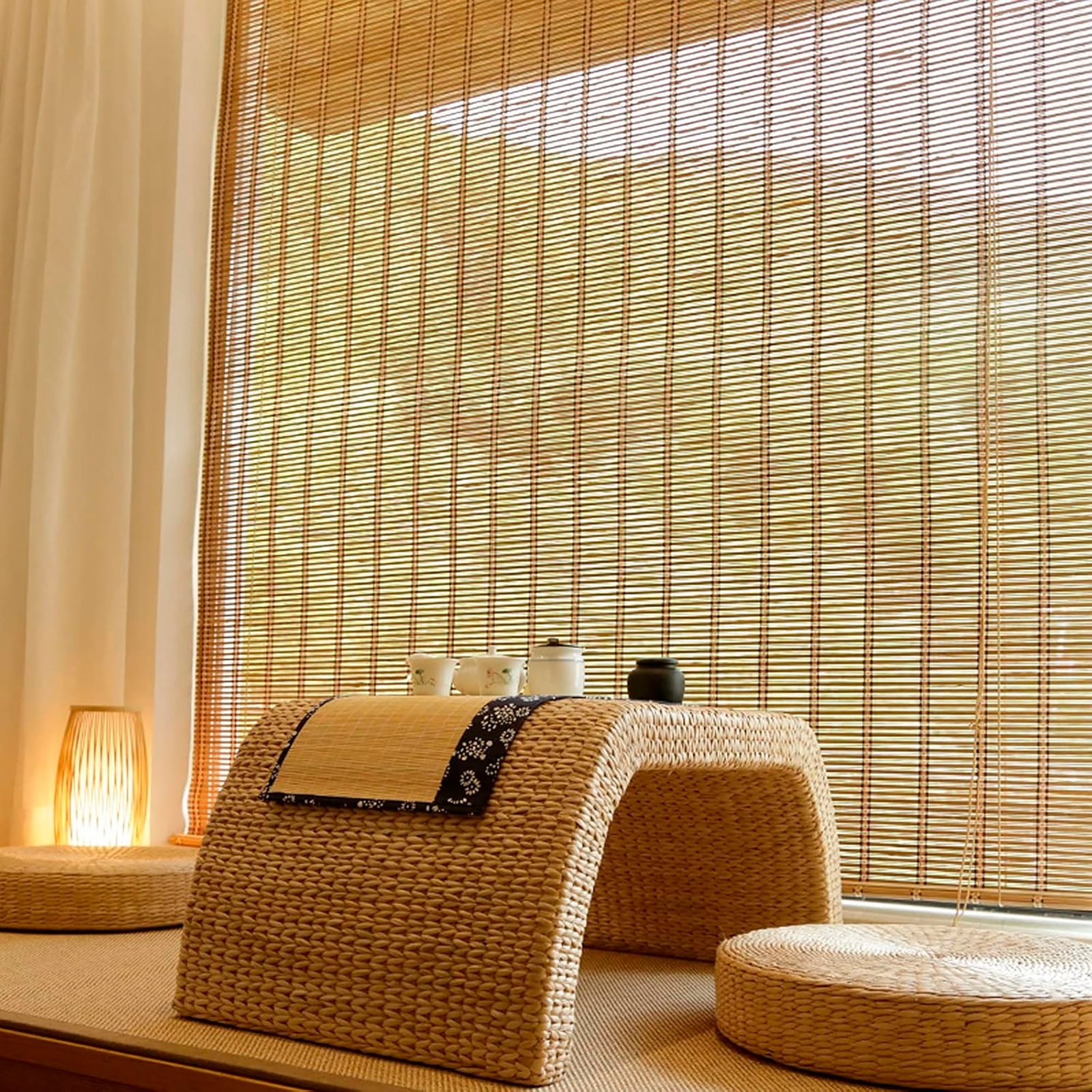 • Tipo: Persiana enrollable / cortina de tejido natural (roll-up).