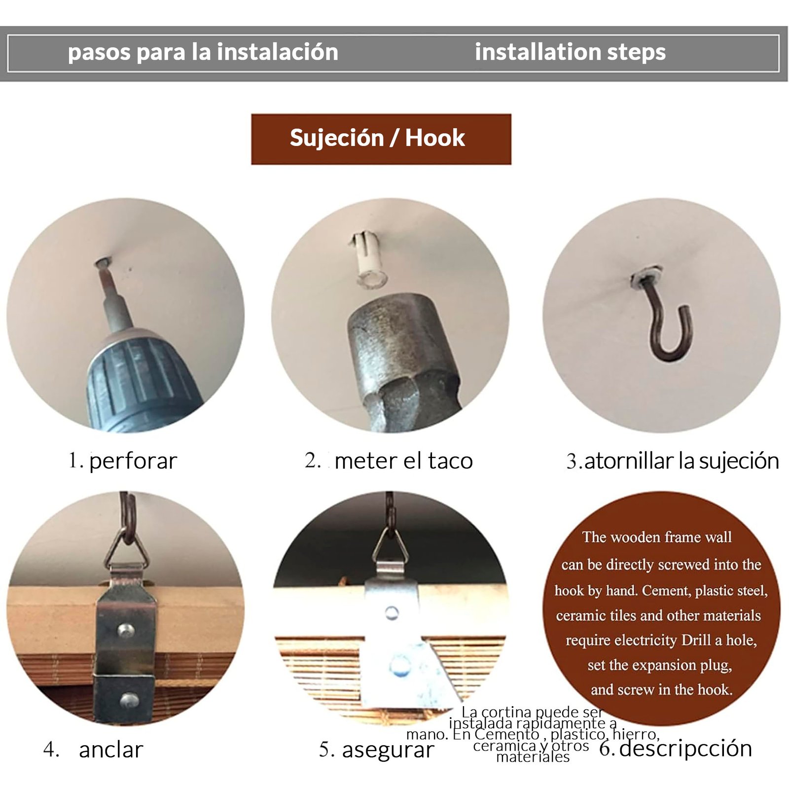 La Persiana de Bambú Enrollable de MegaSharkCo transforma cualquier espacio con su estética natural y funcionalidad práctica. Disponible en 90×180, 120×180 y 150×180 cm, esta cortina aporta calidez, privacidad y control de la luz, además de integrarse con estilo en salones, bares, pérgolas, ventanas y puertas. Diseñada para ser fácil de instalar, incluye sistema de enganche para montaje rápido y seguro.